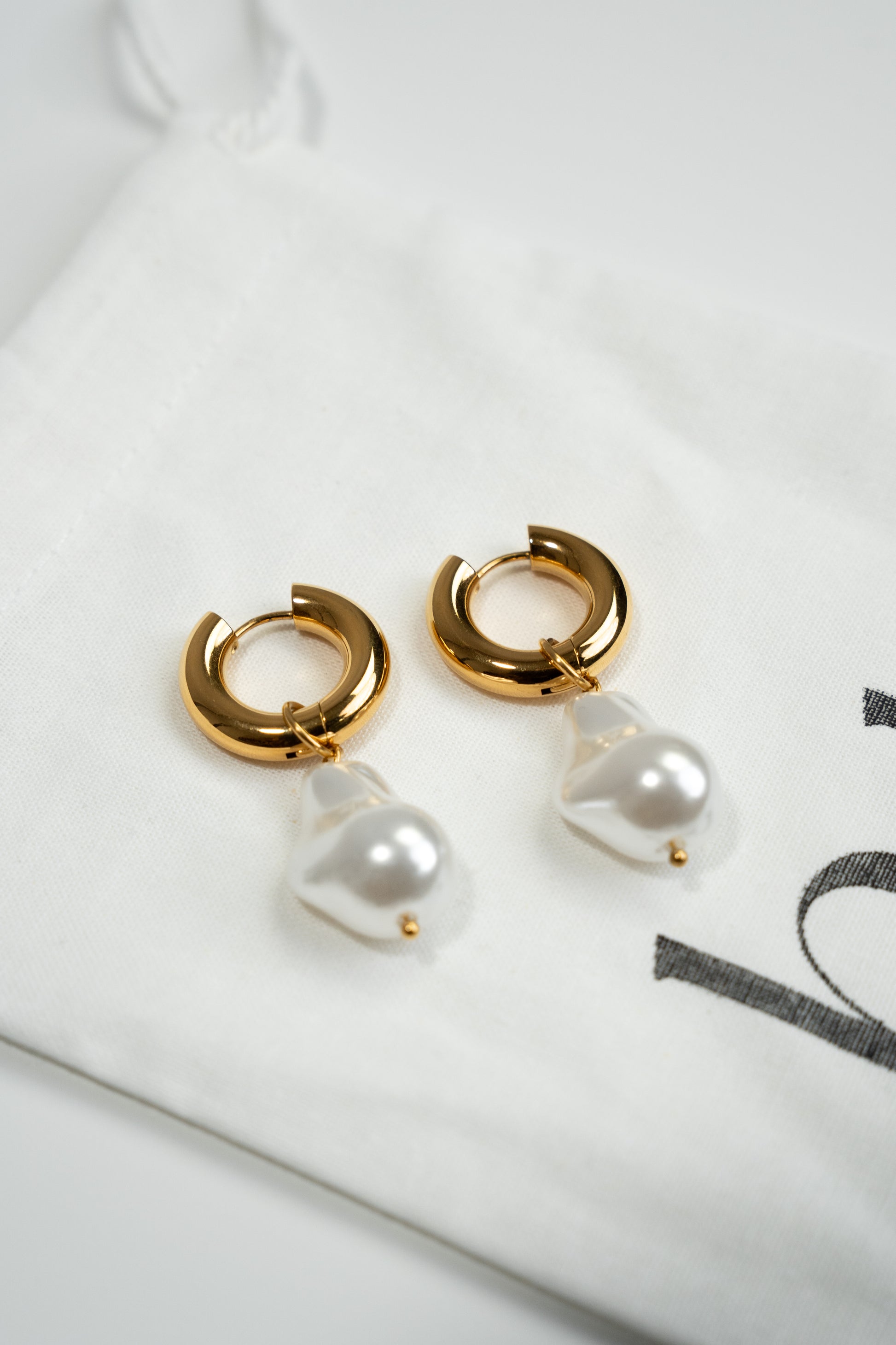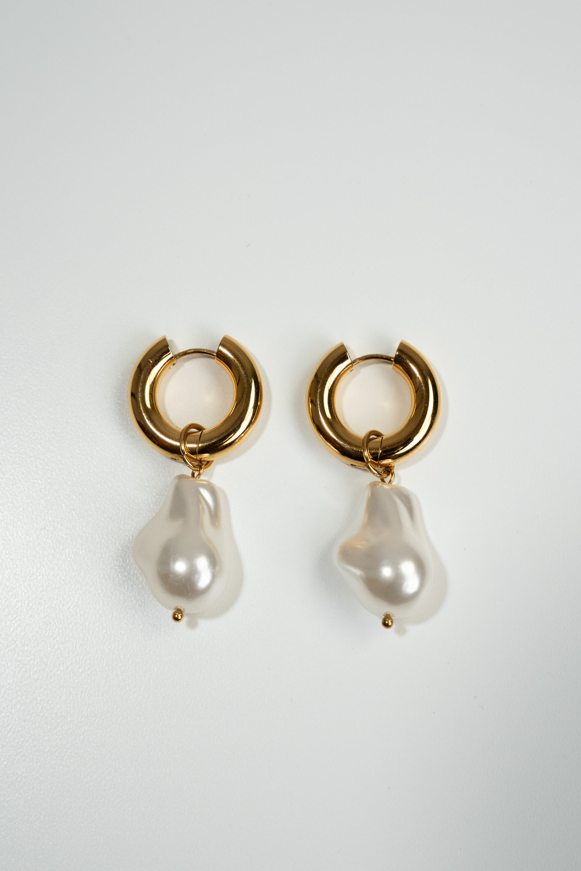 Brincos estilo argola com pérola irregular maxi, super tendência FW25.