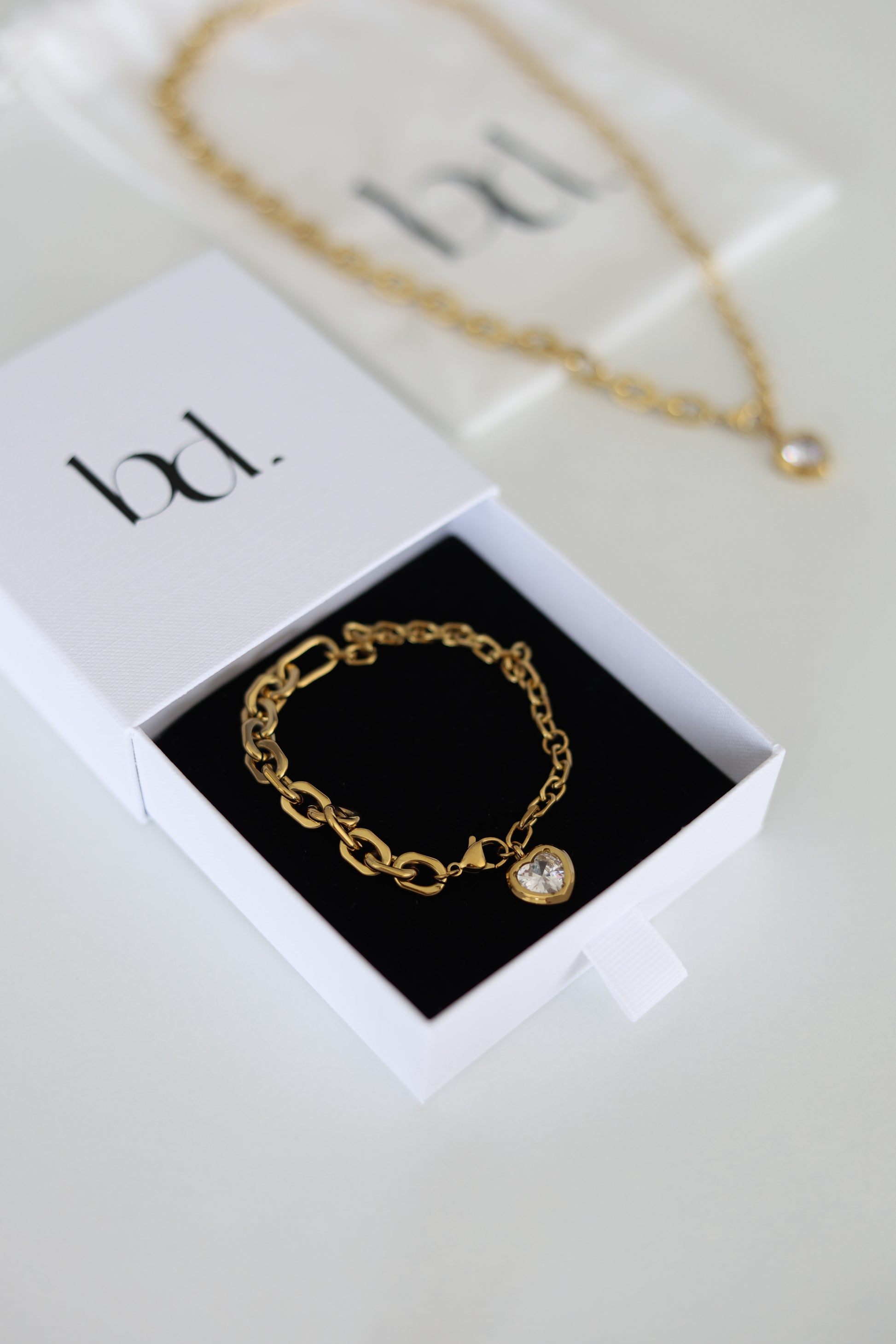 Pulseira delicada com pendente coração. Faz match perfeito com o Lia necklace.