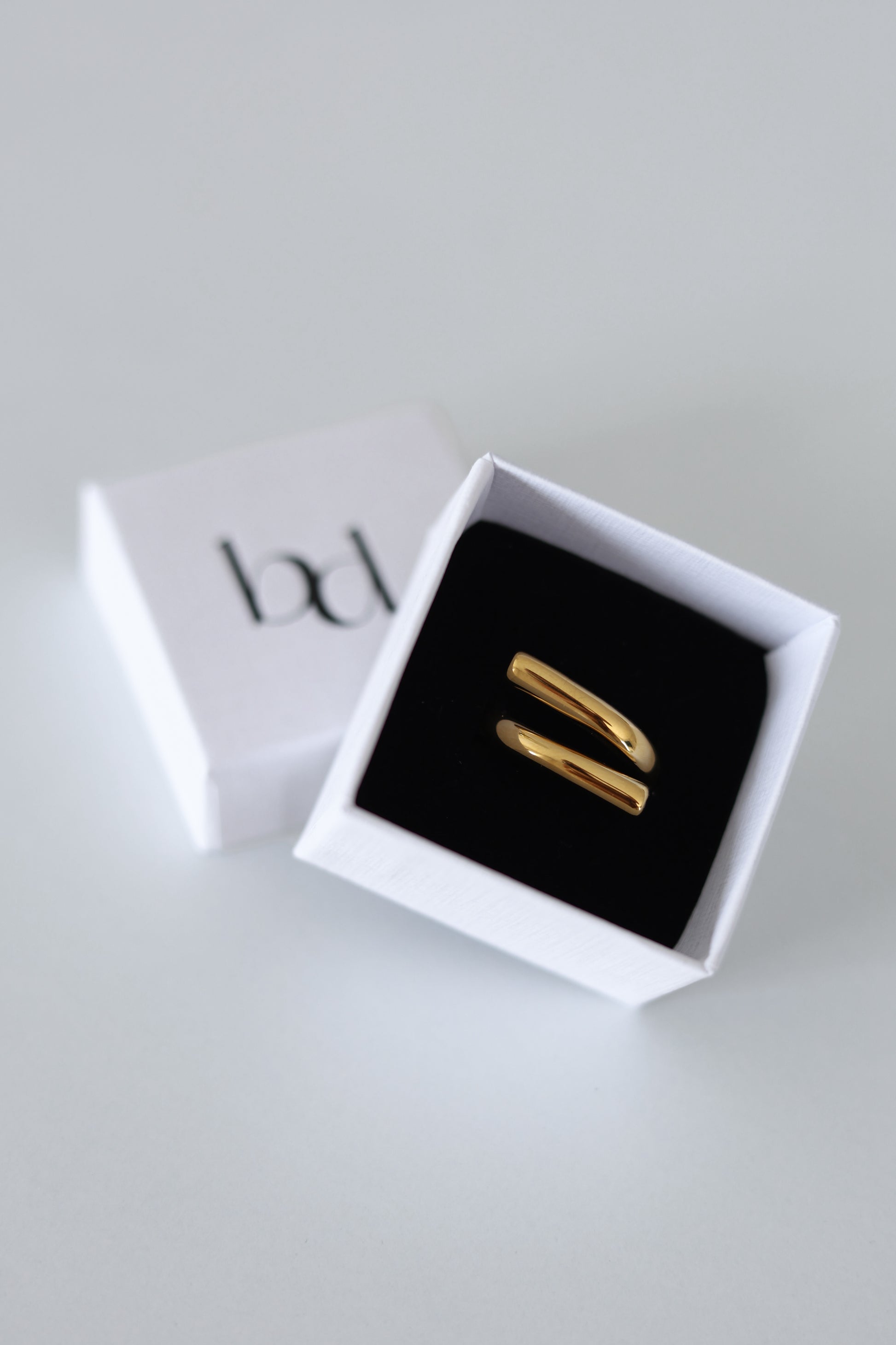 Anel delicado com 2 zircónias em cada ponta.