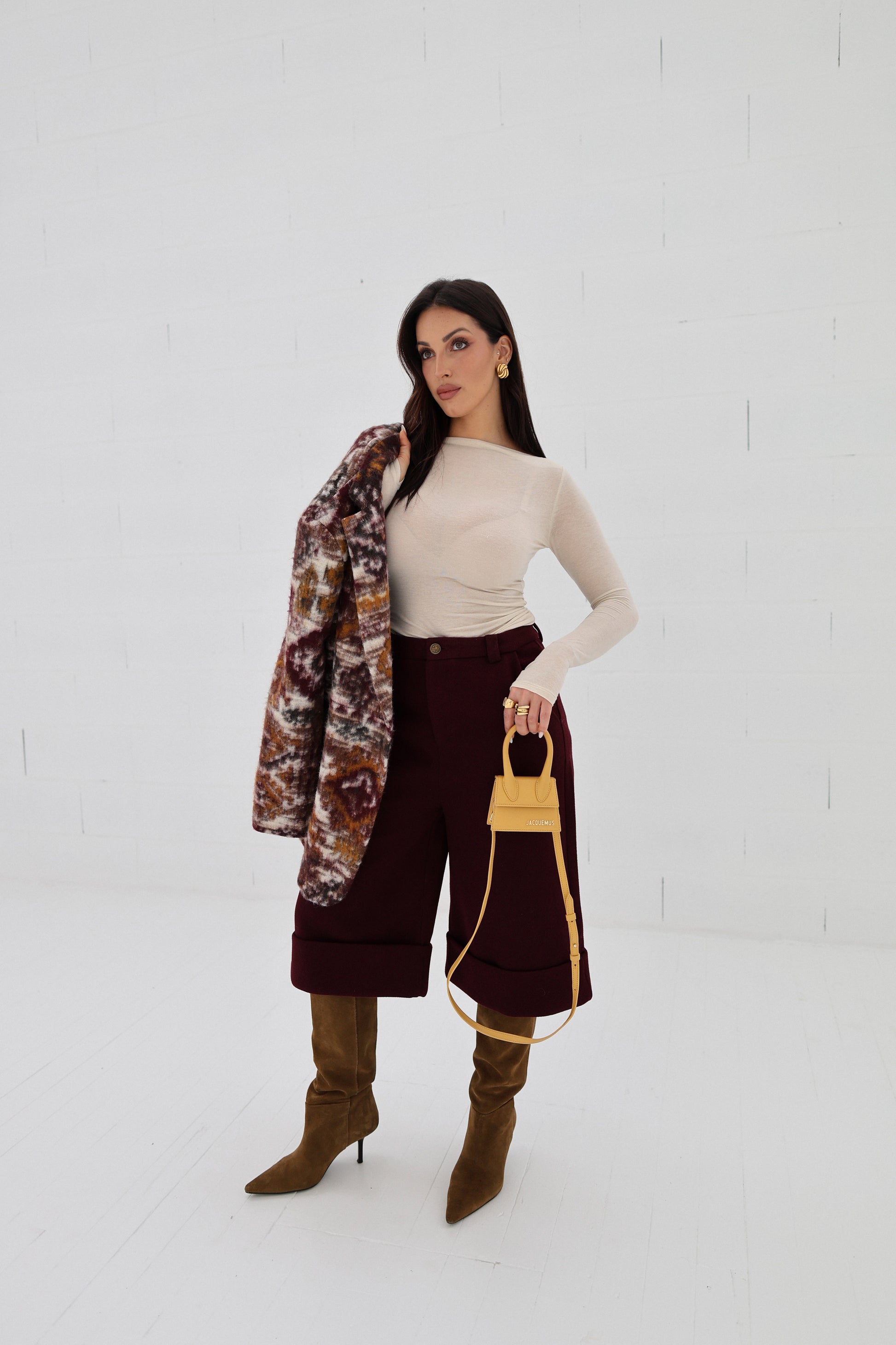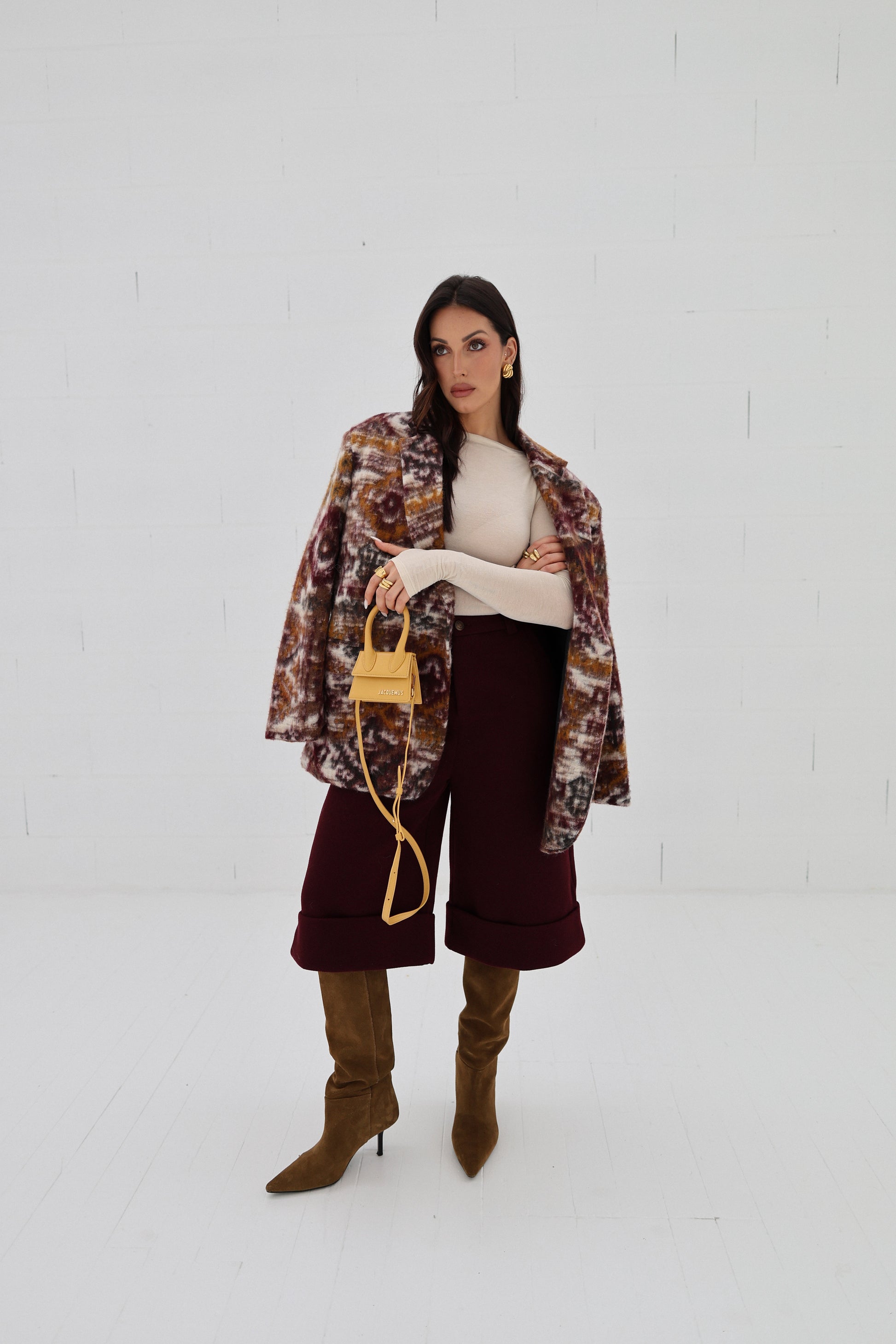 These tailored bermuda shorts add a modern, fashion-forward edge while keeping the silhouette clean, elegant and intentional.