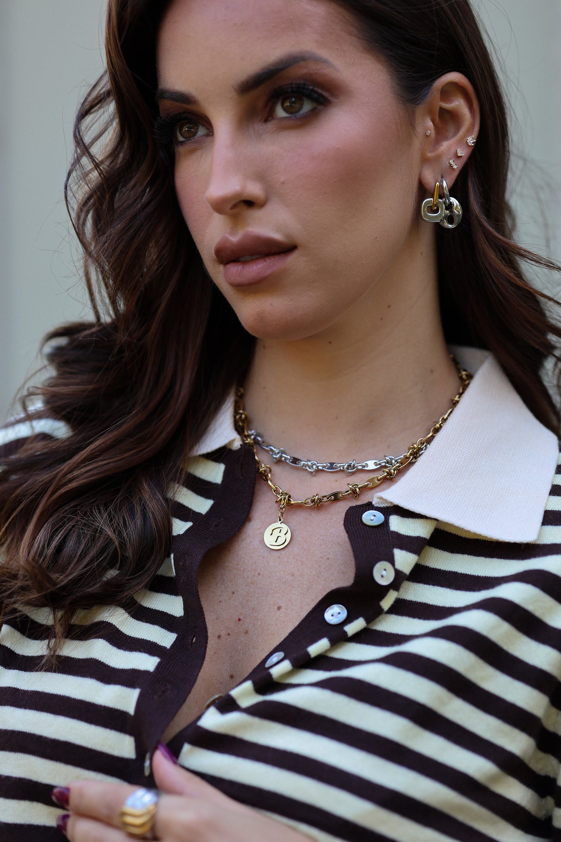 Conjuga os "Whisper" earrings com os "Hush" earrings para um bold look.